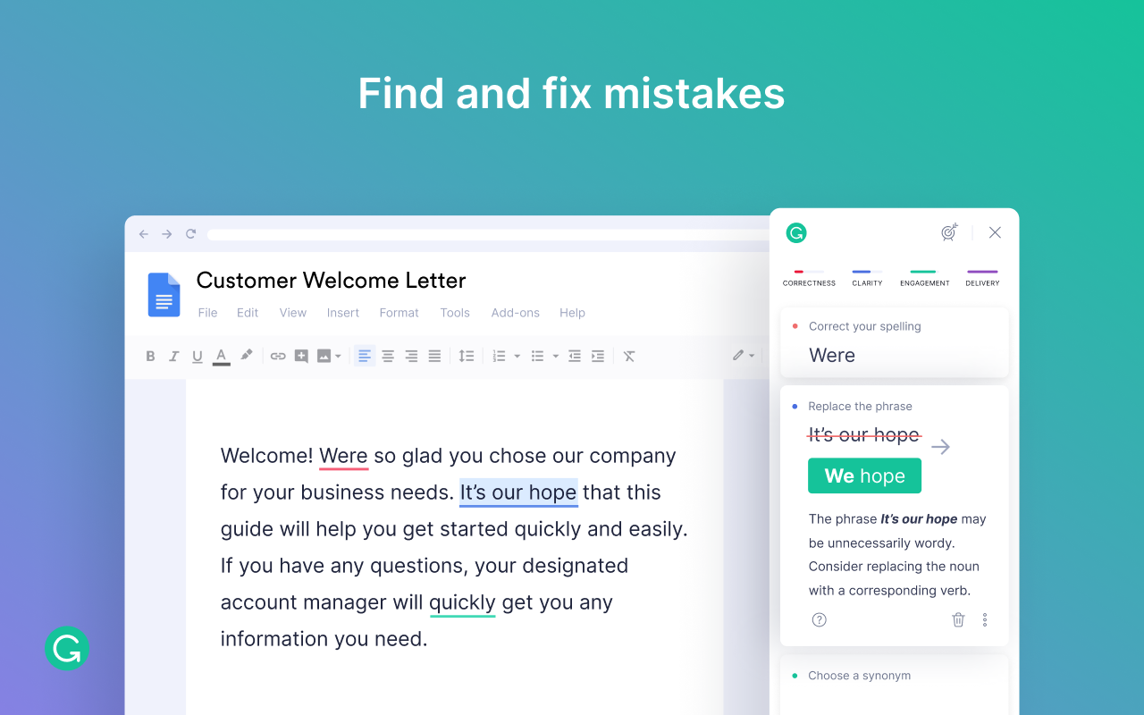 Grammarly helps you identify errors in your writing and suggests corrections for spelling, grammar, and punctuation mistakes. It’s a great tool for bloggers, online writers, students, and professionals.